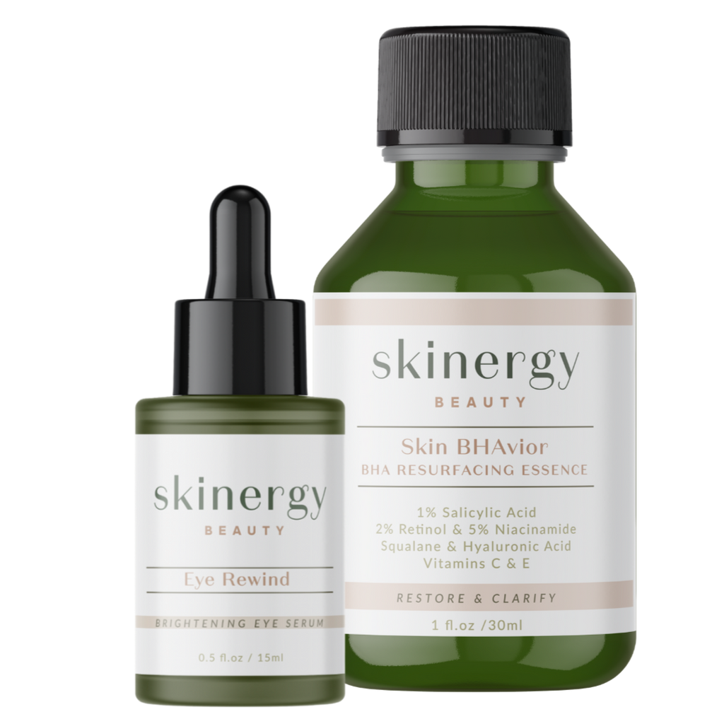 This glow-enhancing duo pairs our Eye Rewind Brightening Eye Serum with the Skin BHAvior Resurfacing Essence to support your skin’s natural rhythm through every chapter. With gentle retinoids and botanical acids, this set encourages a smoother, more luminous complexion, without the harshness.